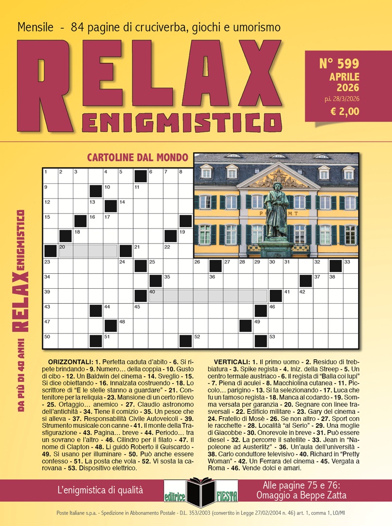 Relax la rivista più completa, con una grande varietà di giochi a difficoltà crescente, con l’aggiunta di barzellette, curiosità e racconti.