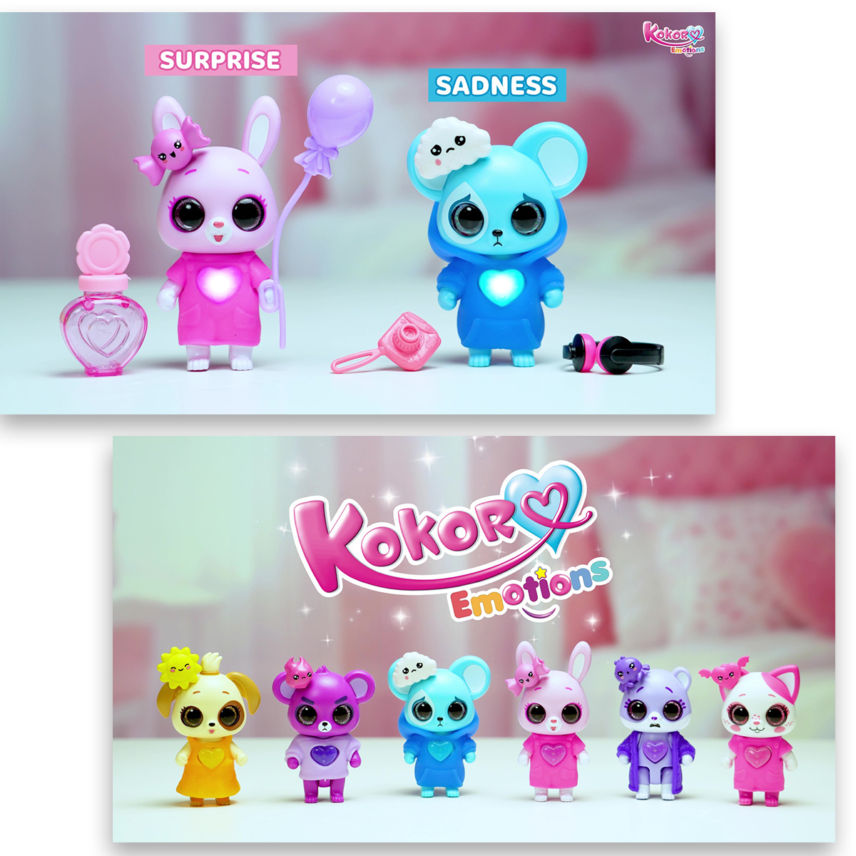 Apri la casetta ed entra nel magico mondo dei Kokoro Emotions! Metti il cuoricino sulla pancia del Kokoro e accendi la magia! Indossa il vestitino e scopri i fantastici accessori. Ognuno ha la sua casetta, con tanti scenari da montare. Decorali con gli sticker e con 4 casette crea il magico quadrifoglio! Pile incluse. Età: 3+